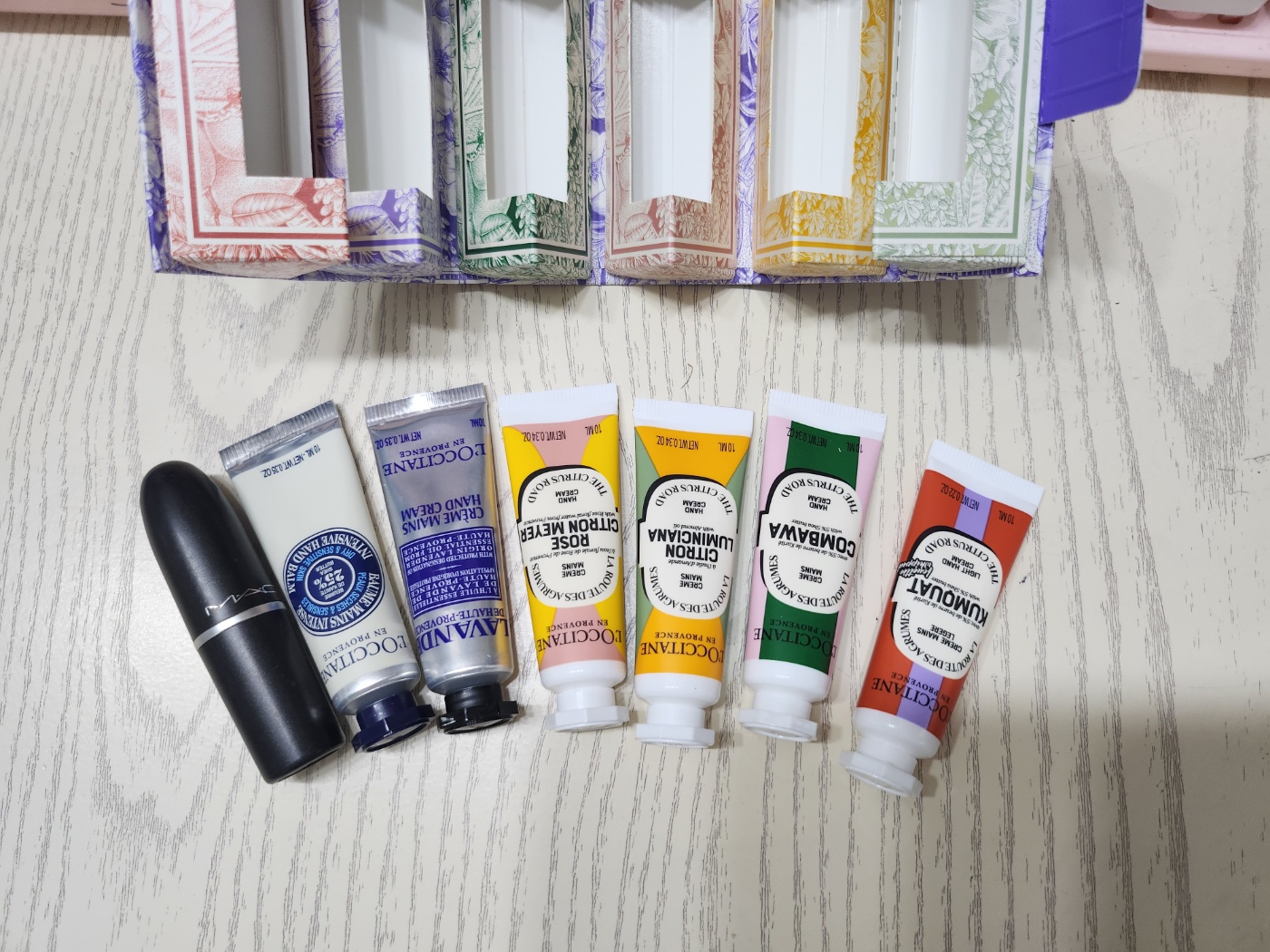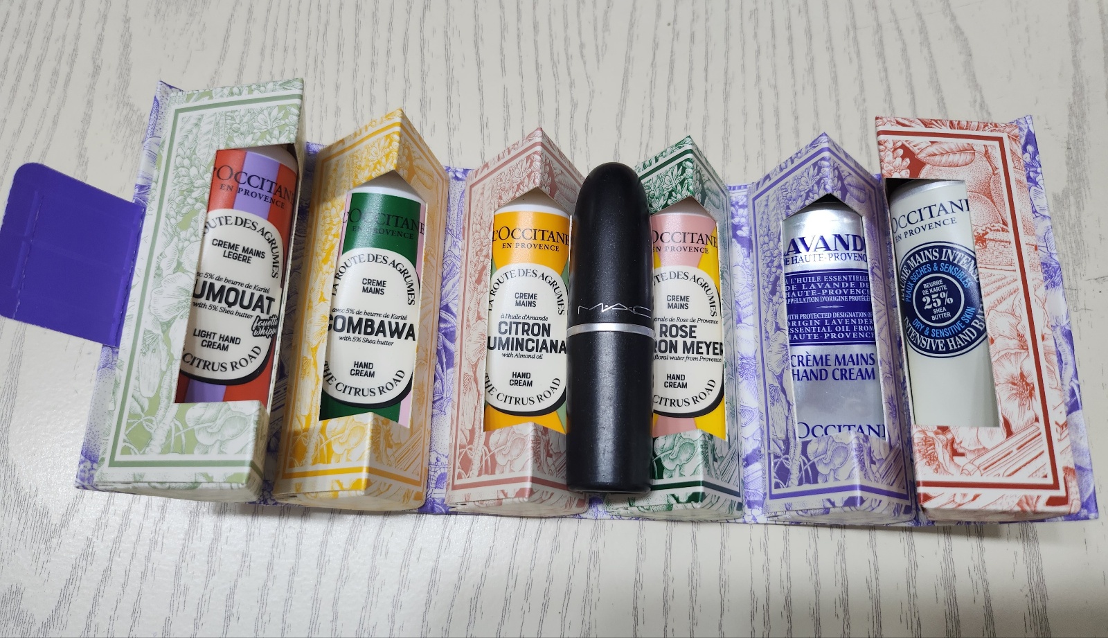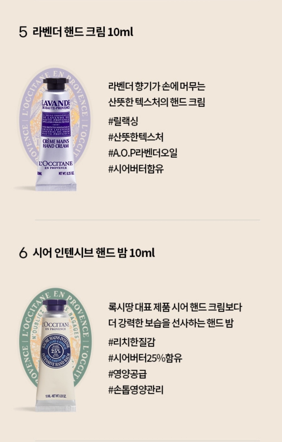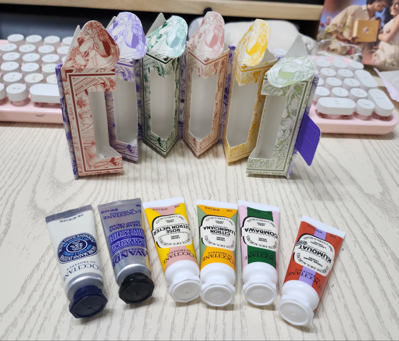 6가지의 향을 가진 미니미니 핸드크림이 들어있어요.