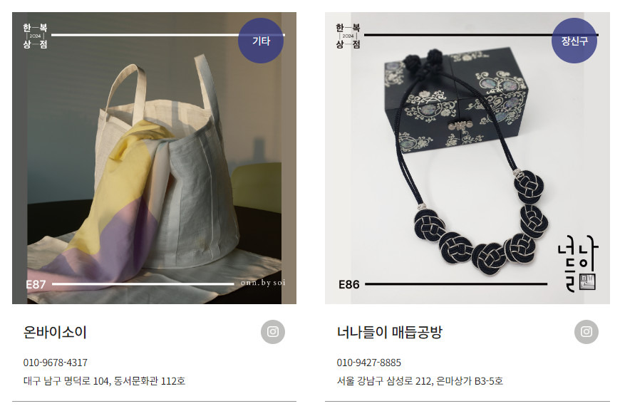 우리나라의 전통 한복은 물론이고, 생활 한복이나 드레스와 같은 디자인 한복, 아이 한복은 물론 한복 원단을 아용한 각종 생활용품 등 소품들도 전시됩니다.