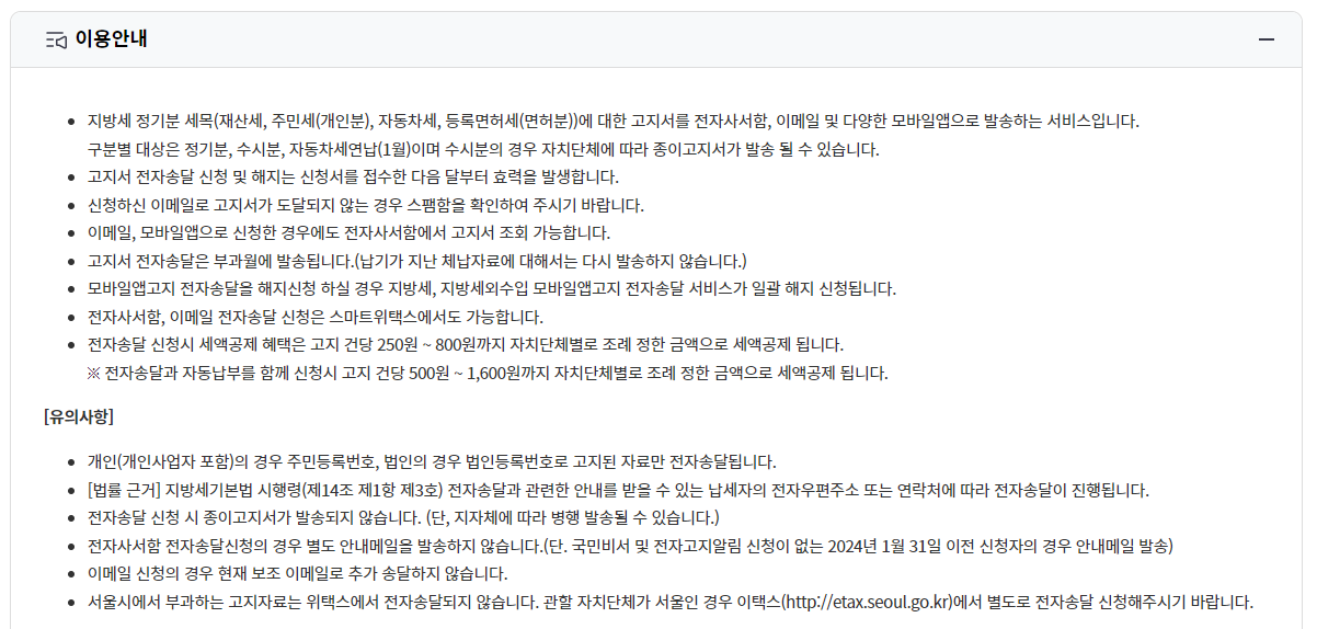 ※ 서울시는 위택스가 아닌 이택스에서 신청하셔야 합니다.